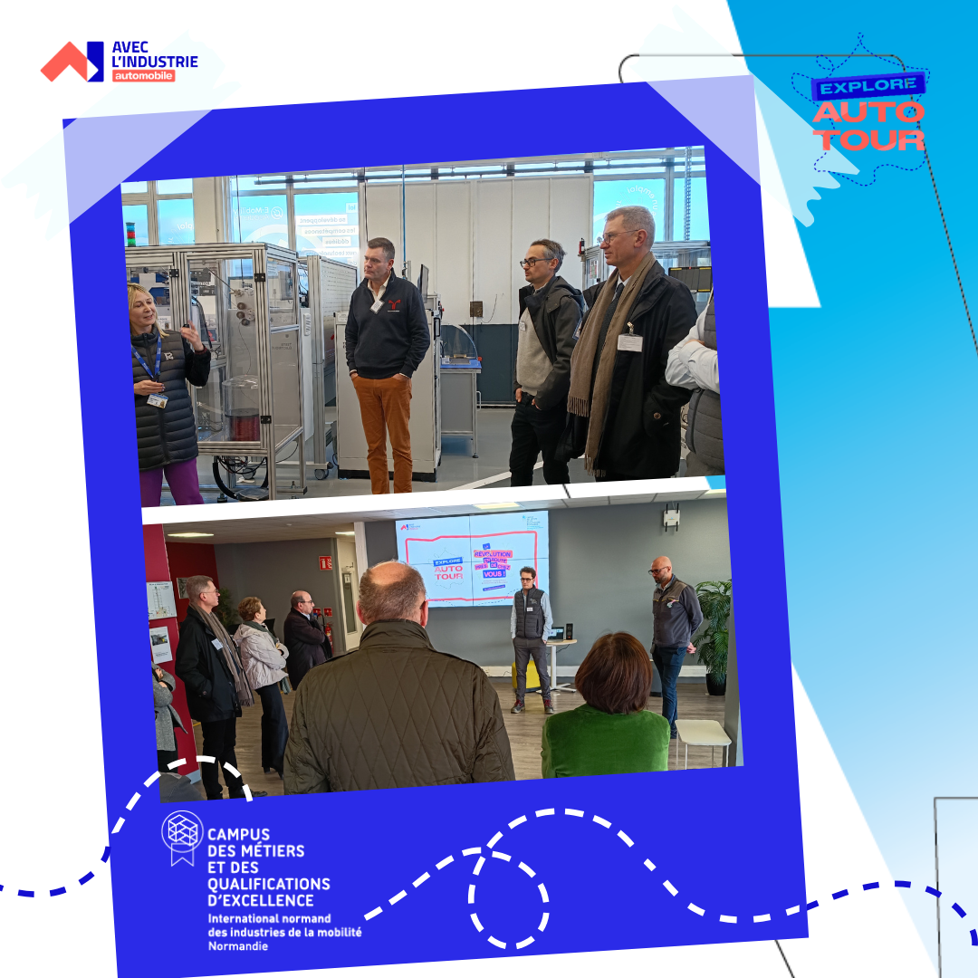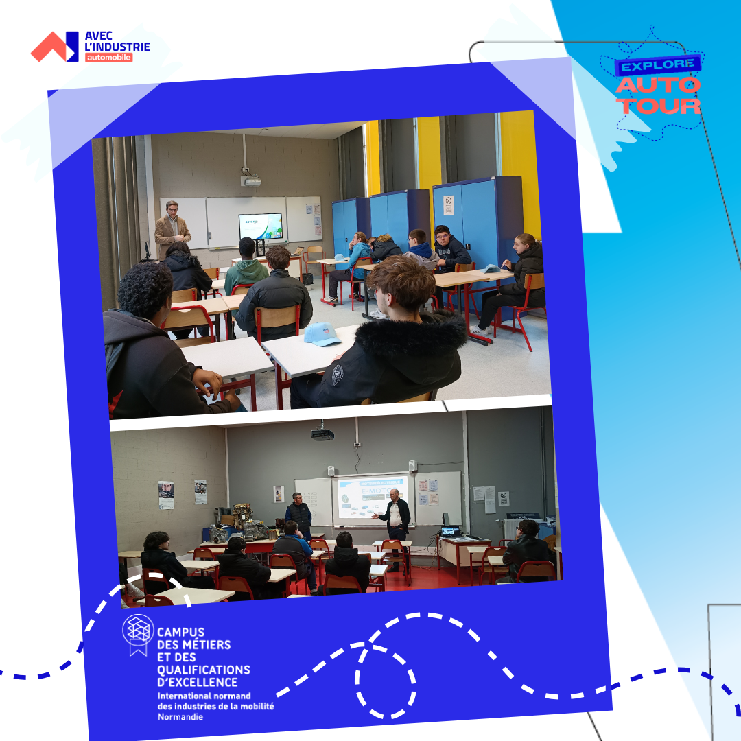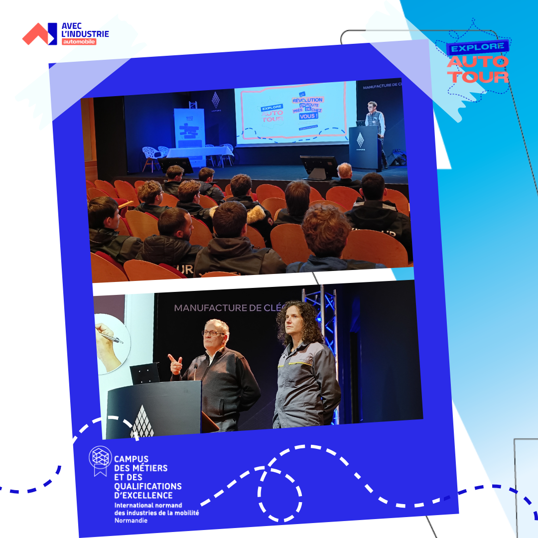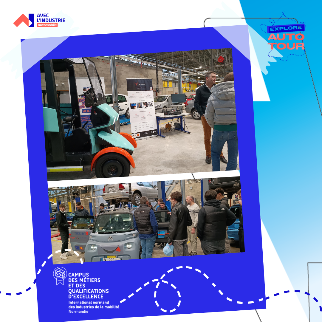• au lycée Marcel Sembat de Sotteville-lès-Rouen : de nombreux ateliers ont été animés par les partenaires sur la mobilité électrique, la cybersécurité des véhicules, la réalité augmentée, l’électronique de puissance, des projets étudiants sur la mobilité hydrogène et l’exposition de véhicules innovants. En parallèle, le site industriel Ampère Cléon a accueilli des groupes de jeunes et de demandeurs d’emploi pour une présentation de l’Explore Auto Tour, des conférences techniques et une visite immersive du site. Un temps institutionnel a également été consacré à la découverte du Campus Industry, le centre de formation d’Ampère dédié aux compétences de l’électrique, appelé à se développer prochainement sur les métiers de l’électronique de puissance, illustrant l’engagement du site en faveur des compétences de demain.